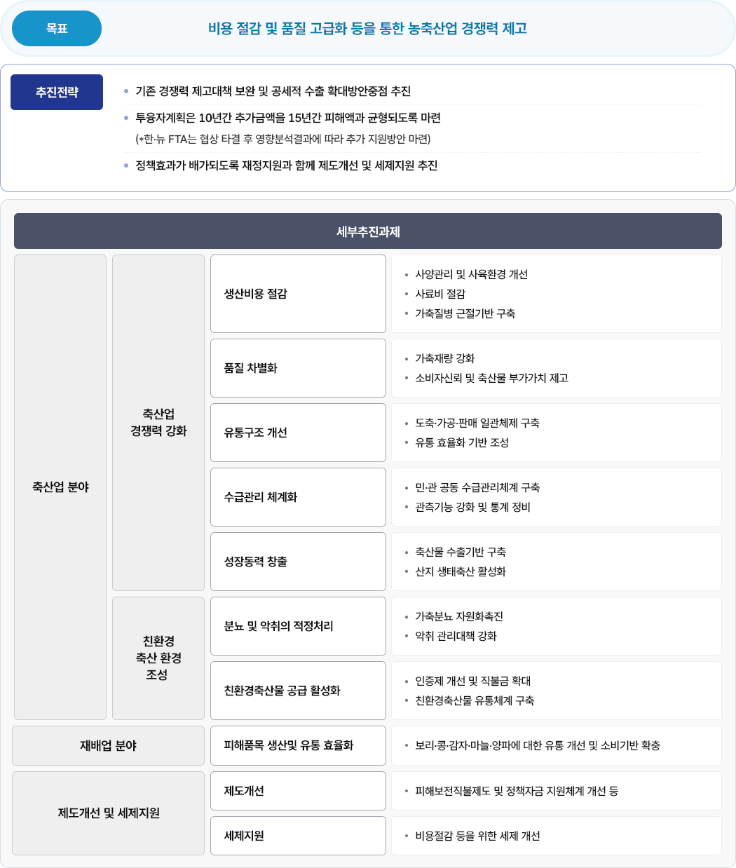 비용 절감 및 품질 고급화 등을 통한 농축산업 경쟁력 제고